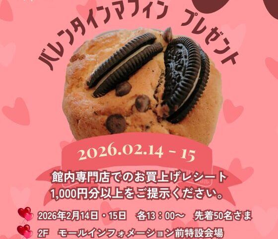 イベント 大沢イオンでバレンタインマフィンがもらえるみたい!2/14・15限定