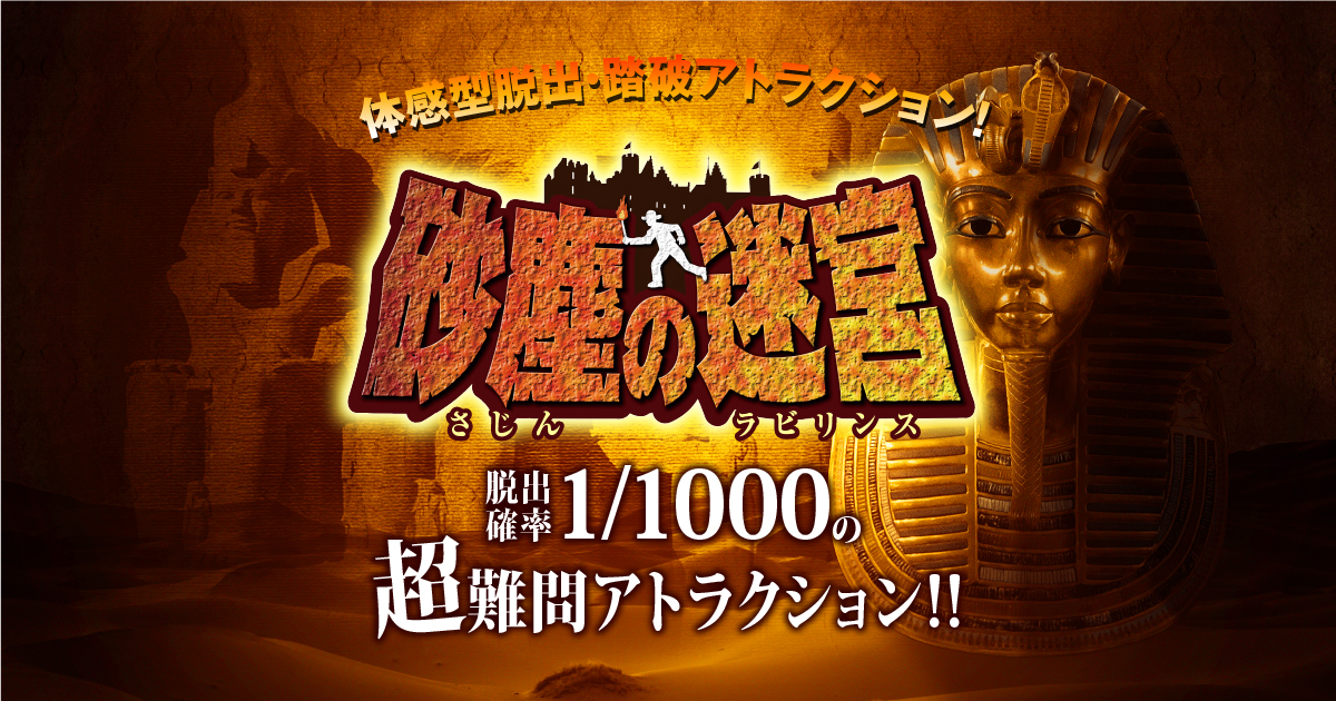 「砂塵の迷宮」は、自分の頭と体を使って7つの空間を先へ先へと脱出する体験型脱出・踏破アトラクションです。