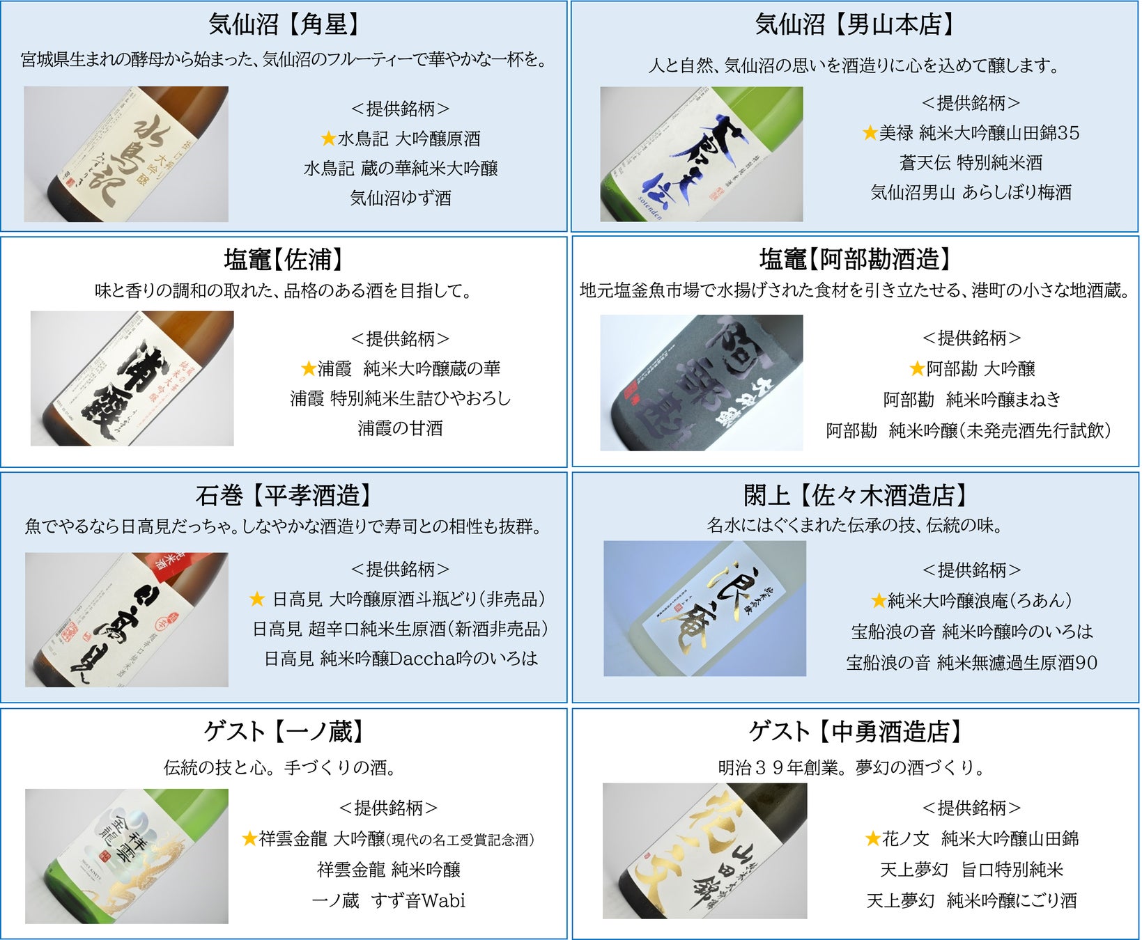 今回は、宮城を代表する8つの酒蔵が集結します。