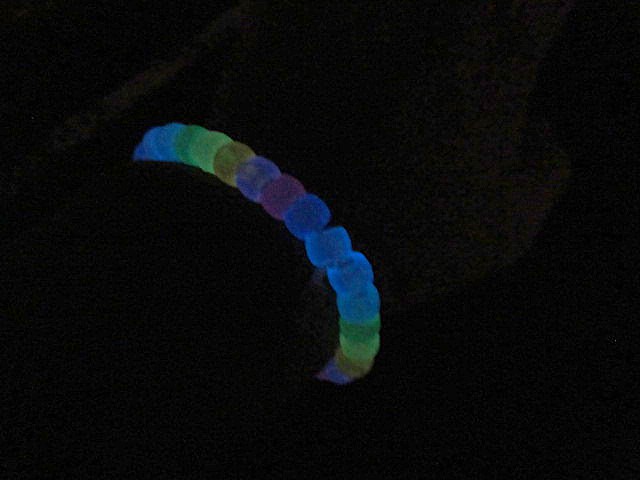 その場で作れるブレスレットは、光るビーズを通すだけの簡単なものなんですが、暗くなるとほんのり光って、自分がイルミネーションの一部になる感覚が味わえます。