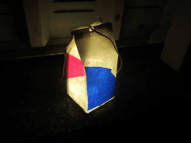 小さめの灯りに自分で装飾をして、持って公園内を歩けます。並べて飾ることもできるそうで、いつもの公園に手づくりの灯りが加わる感じ。