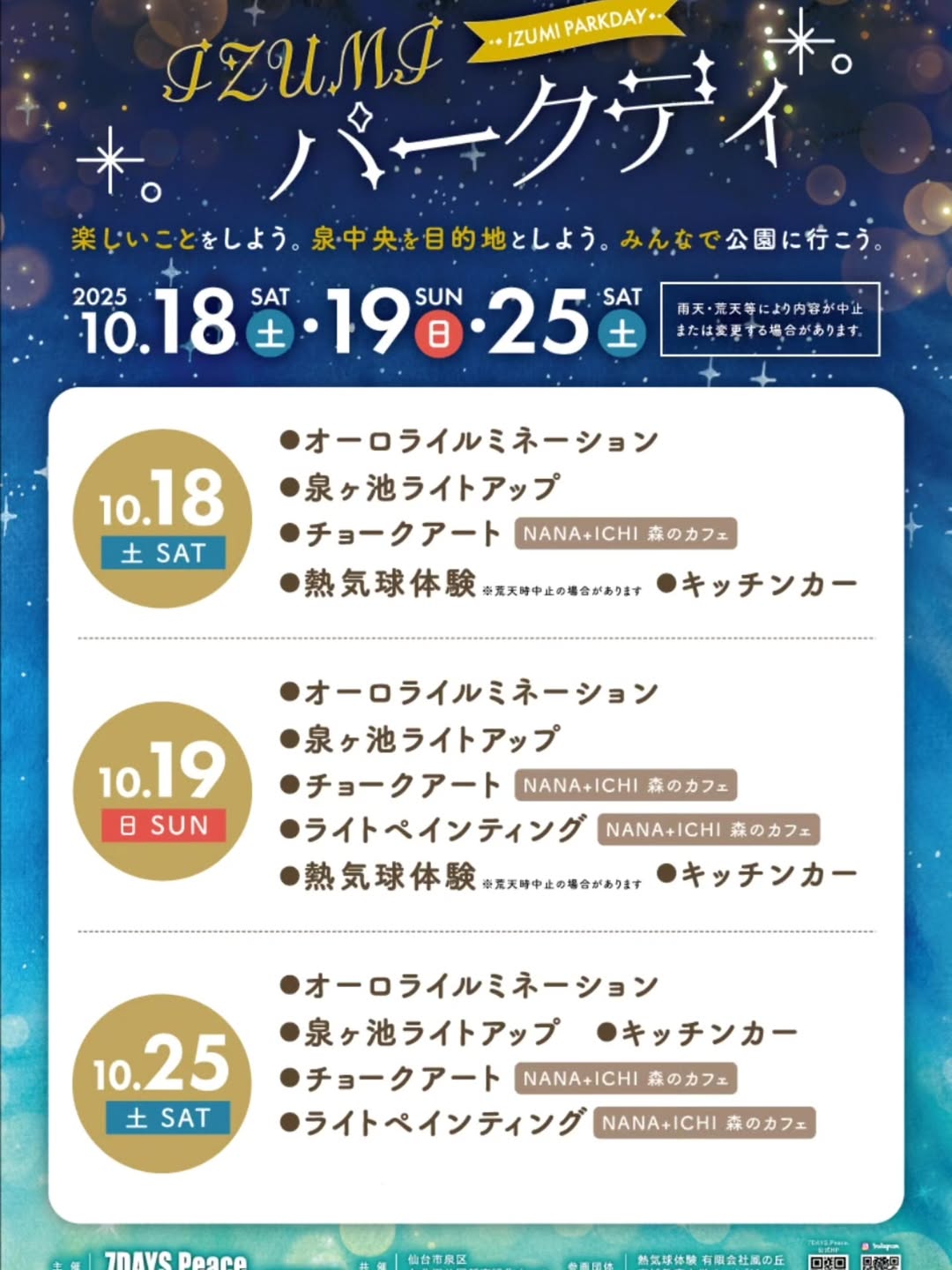 七北田公園で「IZUMIパークディ2025 autumn」開催へ!イルミネーションと熱気球、アートも楽しめる秋イベント