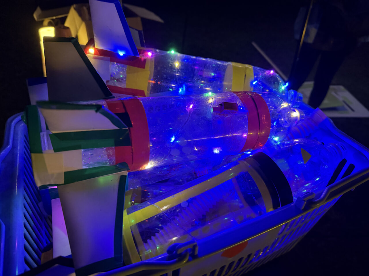 ペットボトルロケット自体も光ってましたが、中に入れる水も光っていたと思います。