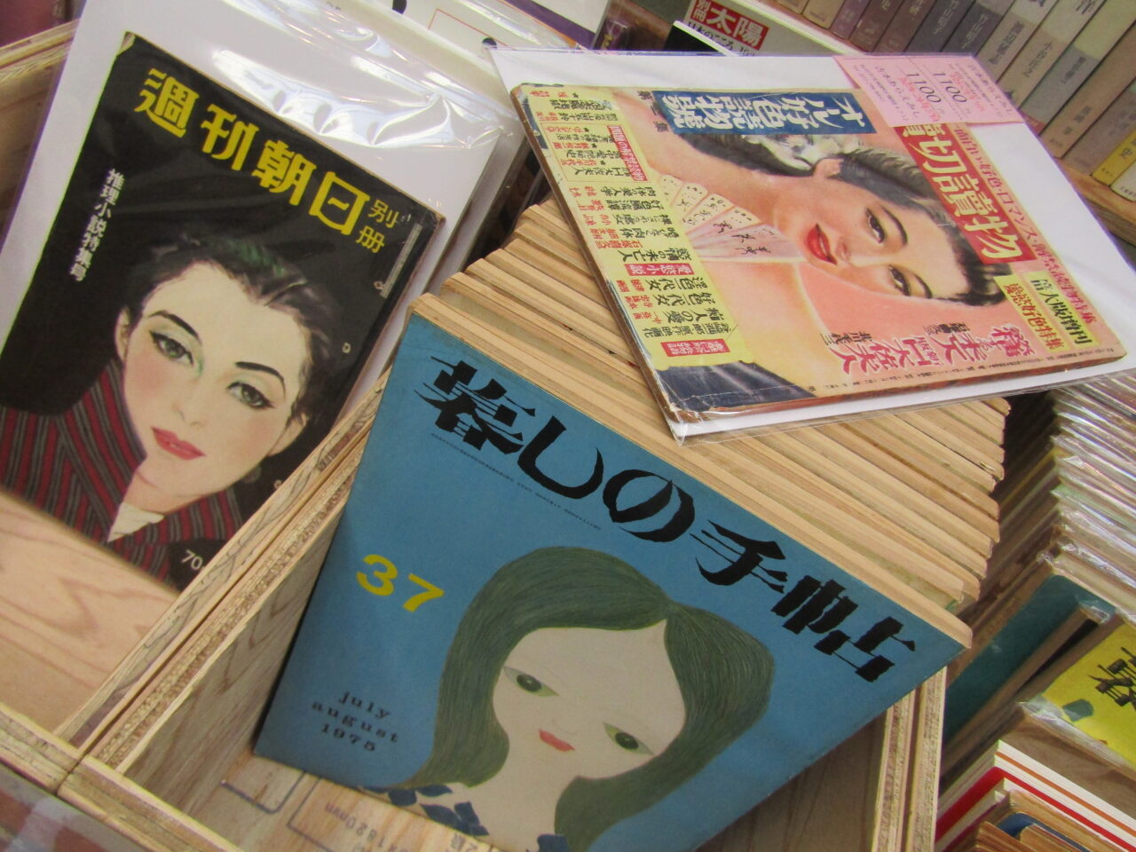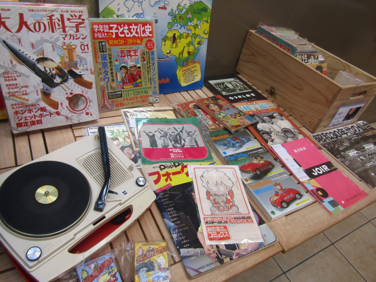 本のコーナーは、昭和に出た本や雑誌、あと昭和をふり返る本なんかがいっぱい。