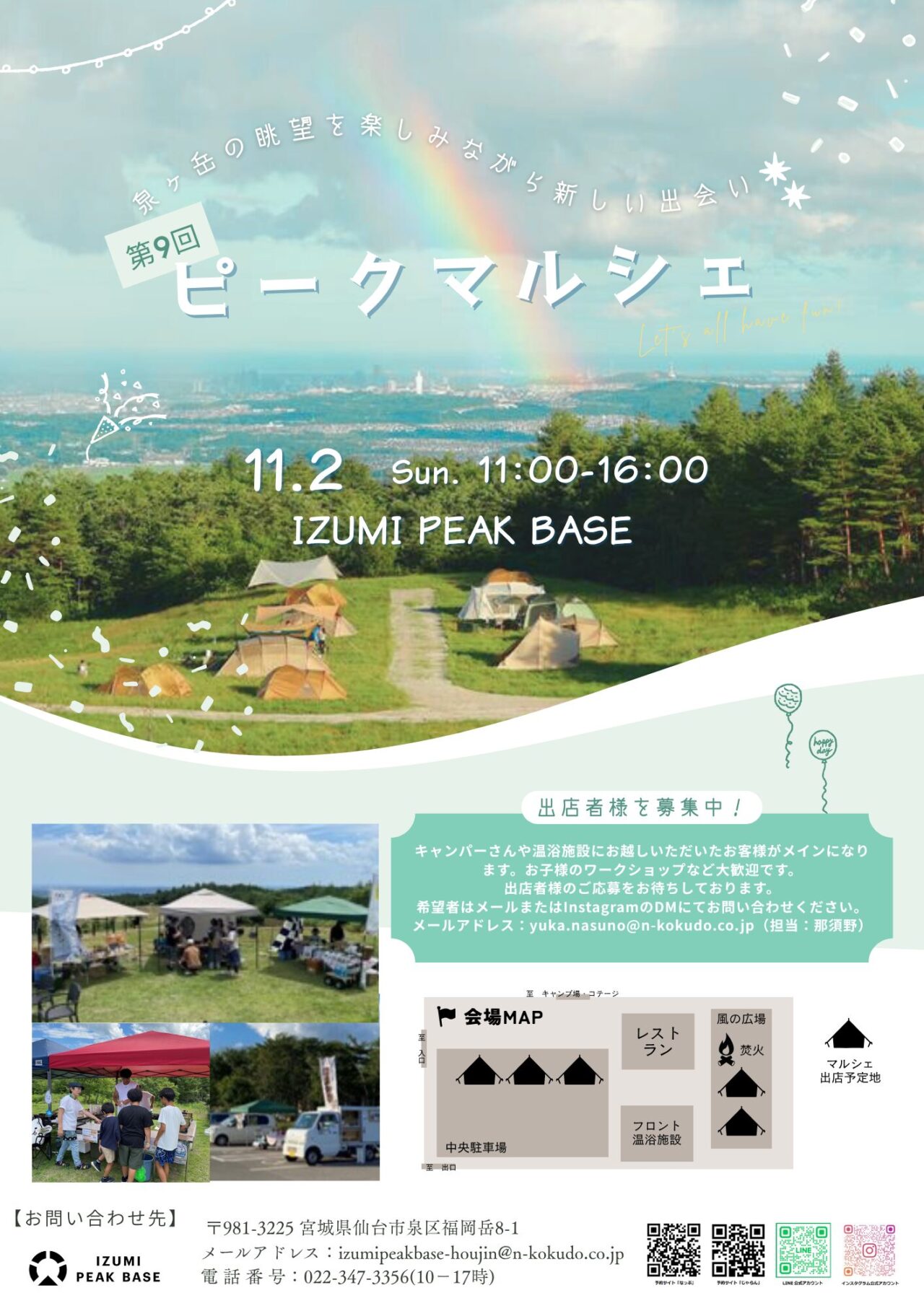 泉ヶ岳のIZUMI PEAK BASEで開催されるマルシェイベントですね。空気も景色も良いところ。どこかに行こうかな〜とまだ考えている人はチェックしてみてください!