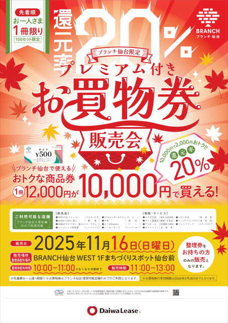 BRANCH仙台でプレミアム付きお買物券の販売があるみたい|11月16日(日)