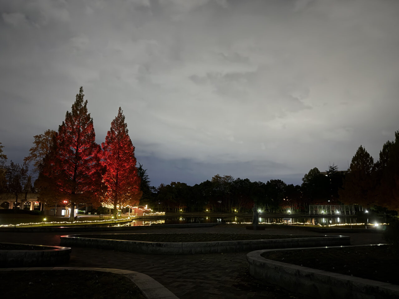 11月に入って日が暮れるのもすっかり早くなりましたが、夜の七北田公園を通ったときに「ん?なんか光ってる?」と思った方もいるかもしれません。