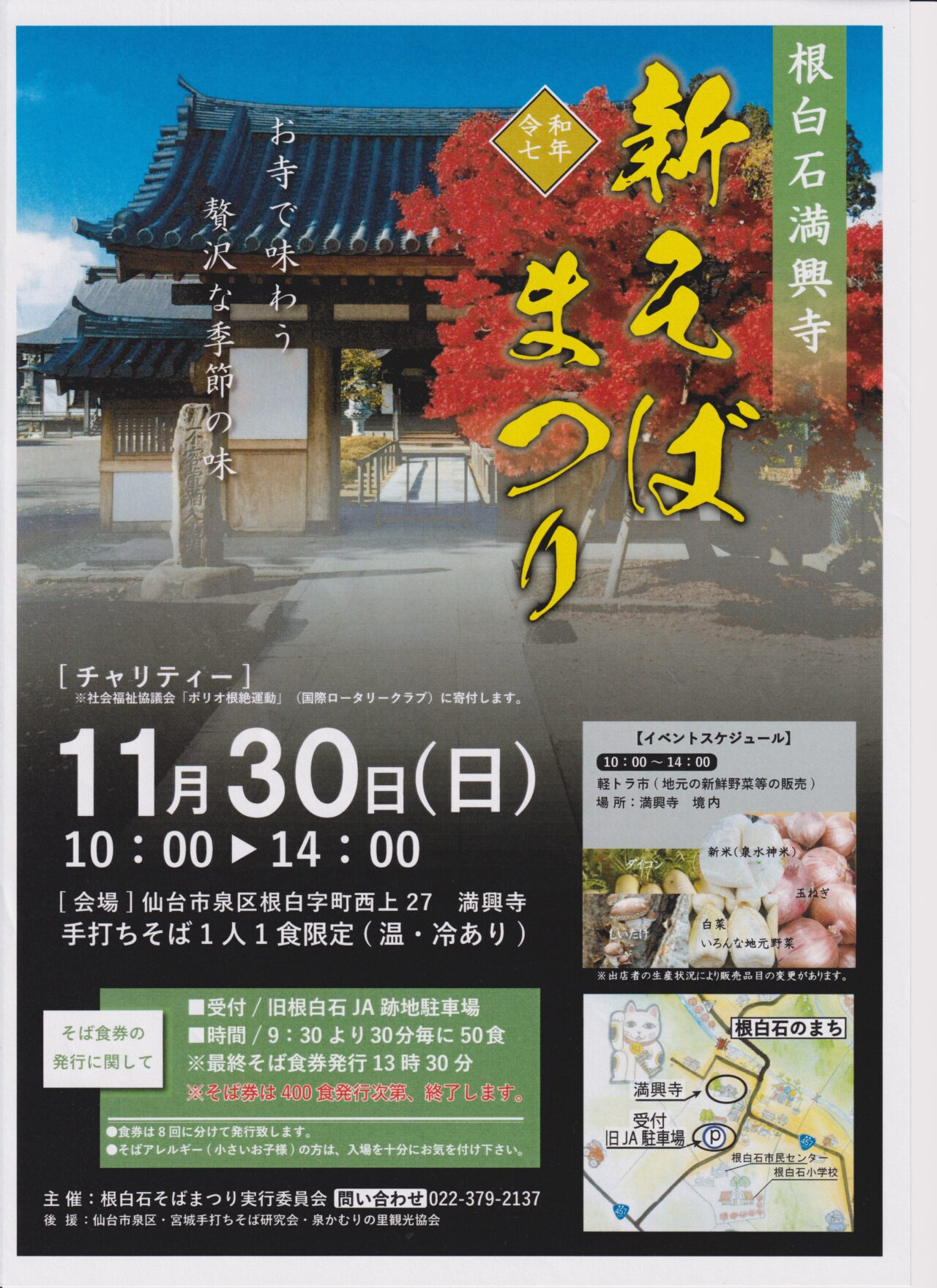 みなさん、こんにちは!根白石の満興寺で、今年も「新そばまつり」が開催されるみたいです!