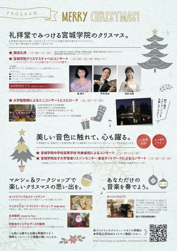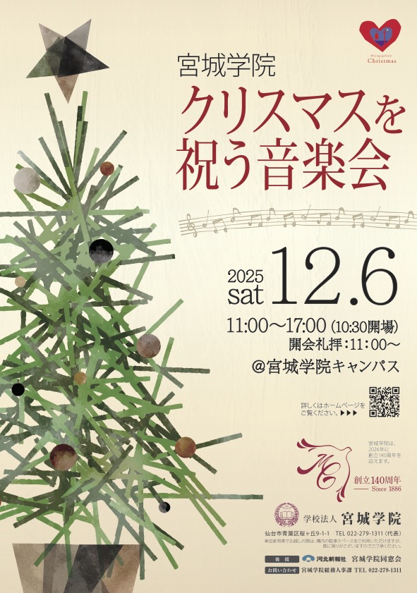 宮城学院で、今年もクリスマスを祝う音楽会が開催されるみたいです。
