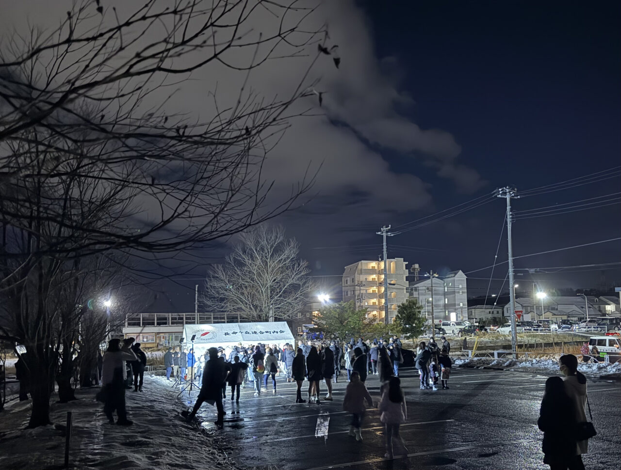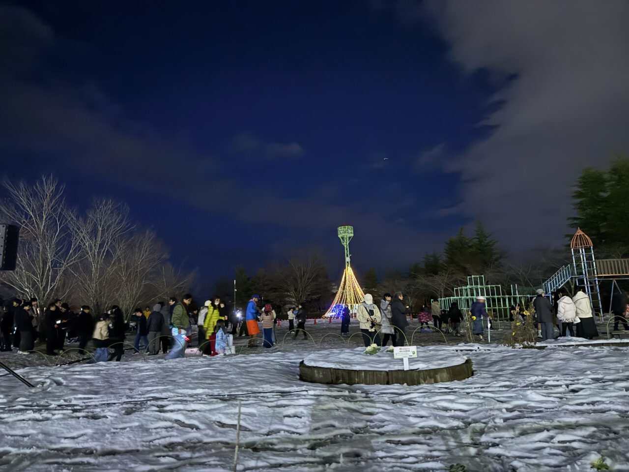 場所はもちろん「長命ヶ丘 愛の鐘公園」。会場はうっすら雪が積もっていて、冬らしさたっぷりの雰囲気。