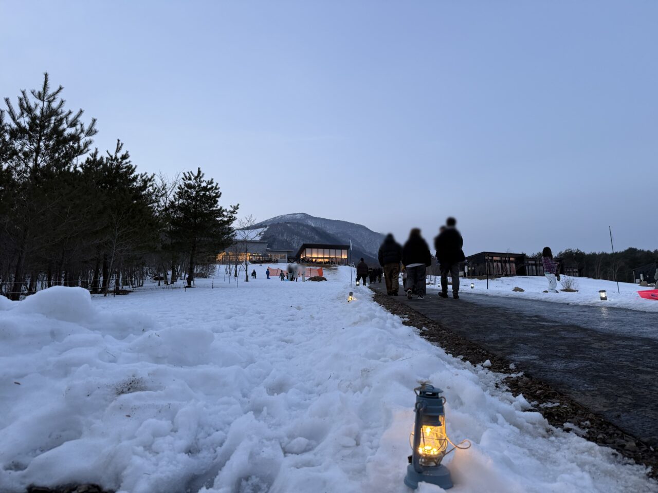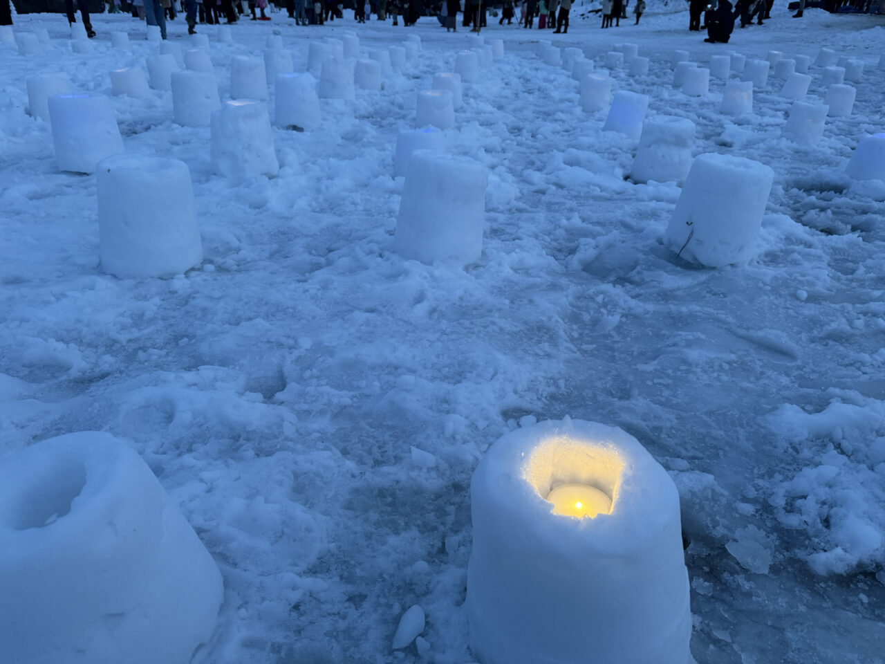 会場に着くと、足元には雪で作られた「スノーキャンドル」がたくさん並んでいて、柔らかい光がとっても可愛かったです!