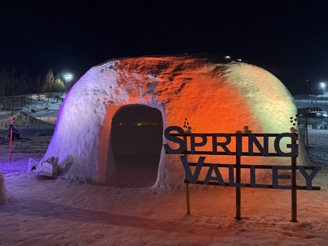 正面には「SPRING VALLEY」のサイン。その背後にあるかまくらが、今年は特に存在感あります。