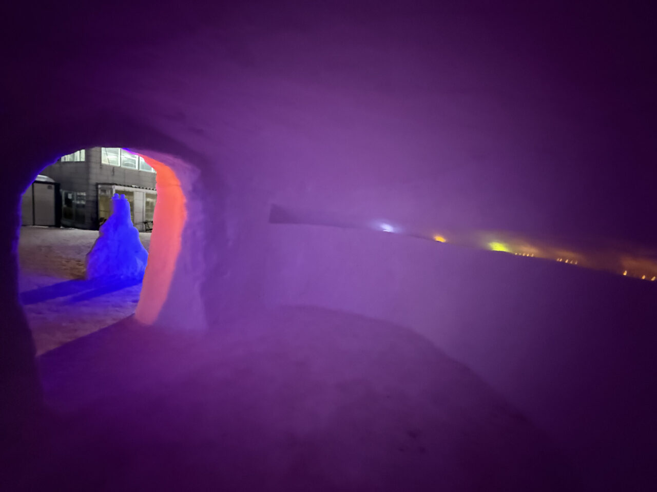 会場はスキー場の一角。ナイター営業の明かりの中に、大きなかまくらがどーんと設置されていました。