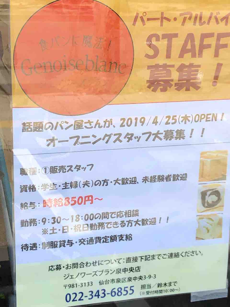 泉中央に食パンの専門店「ジェノワーズブラン」というパン屋さんがオープンしていたみたい。花屋さんのあったとこ。