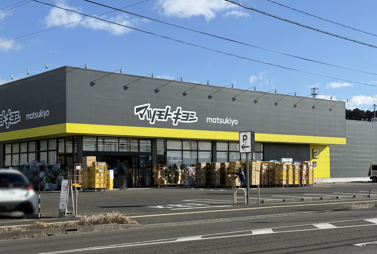 ヨークタウン市名坂の道路をはさんだ向かい側、ユニクロ仙台泉店のおとなりにある「マツモトキヨシ 市名坂店」が、改装工事のためお休み中のようです。