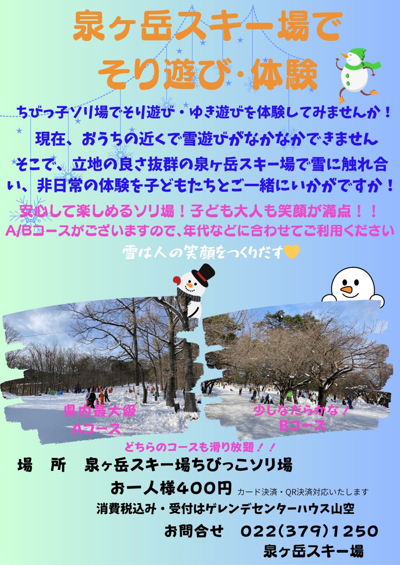 今年も、泉ヶ岳スキー場のちびっ子ソリ遊び場がオープンするみたいです.