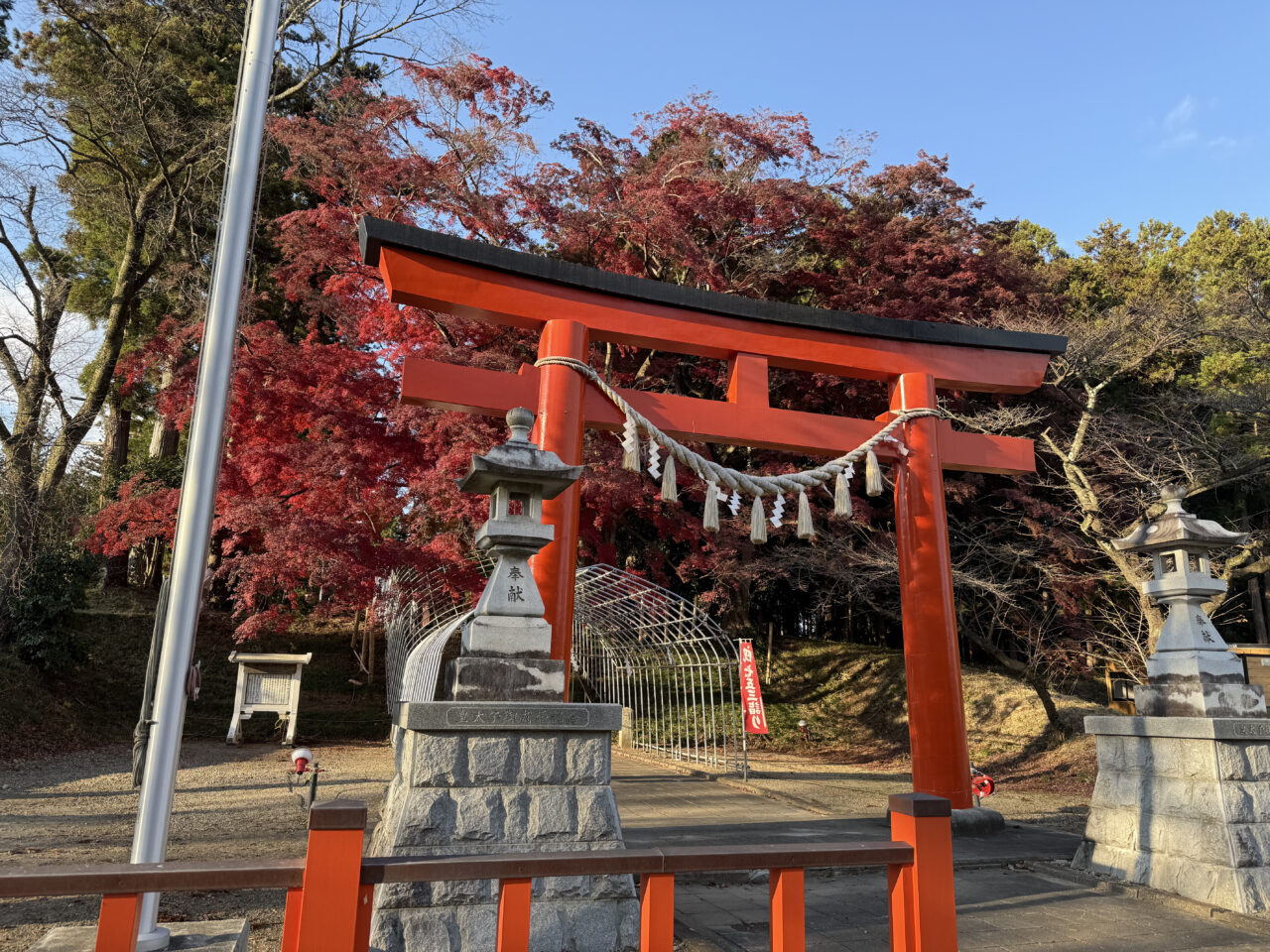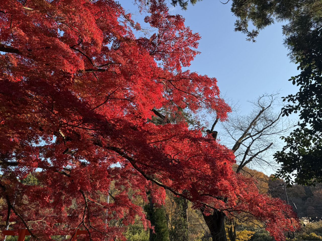 鳥居をくぐってすぐの場所には、大きなイロハモミジが2本。その枝が頭の上を覆うように伸びていて、まるで紅葉のトンネルみたいになっていました。