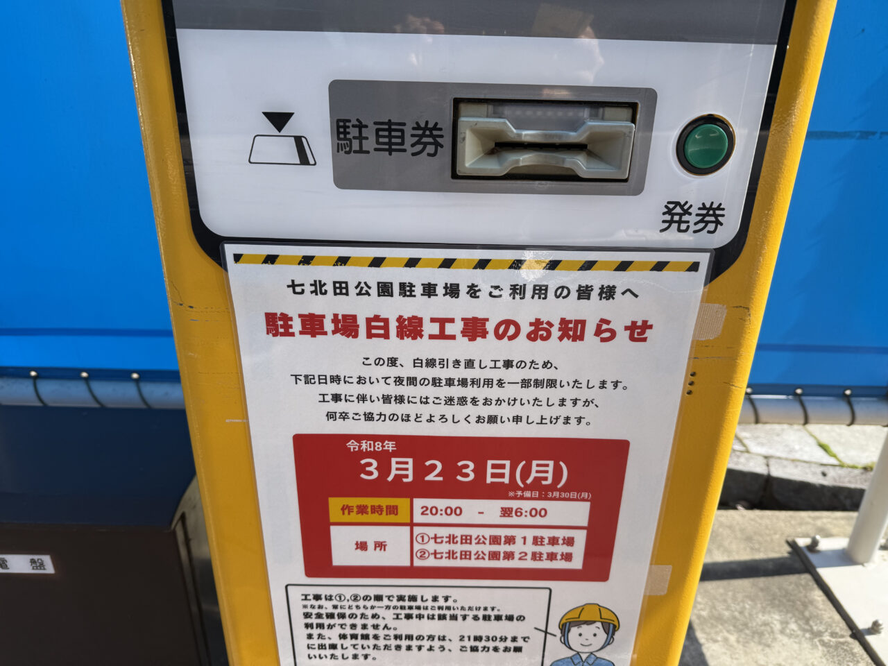 七北田公園駐車場で白線工事による夜間利用制限があるみたい