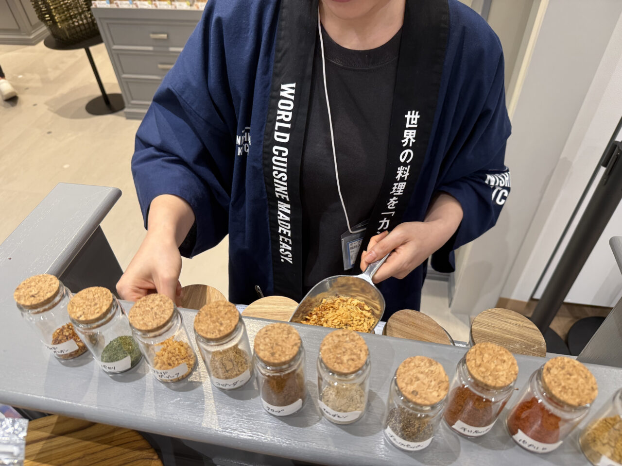 オリジナルスパイス作りもやってきました!3種類のベースから一つを選んで、10種のスパイスを自由にミックスしてオリジナルのスパイスをつくれます。