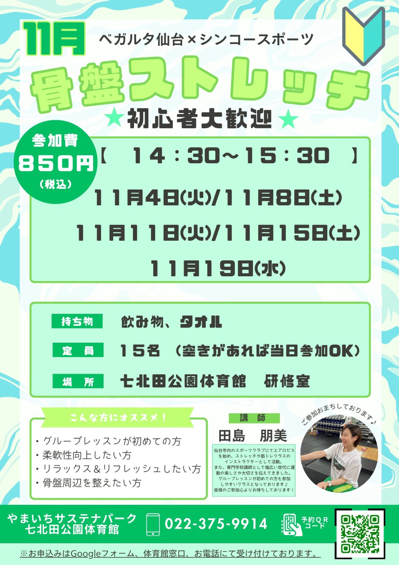 七北田公園体育館で、「骨盤ストレッチ」の教室が開催されています!