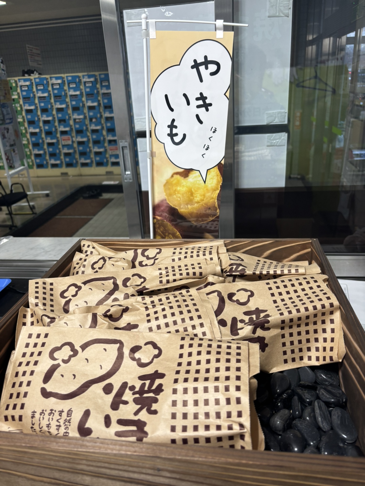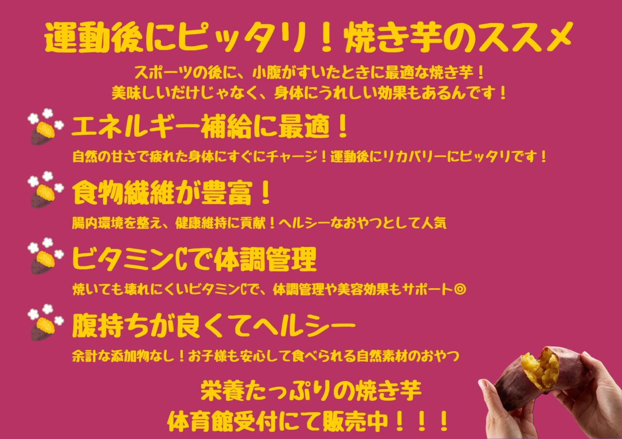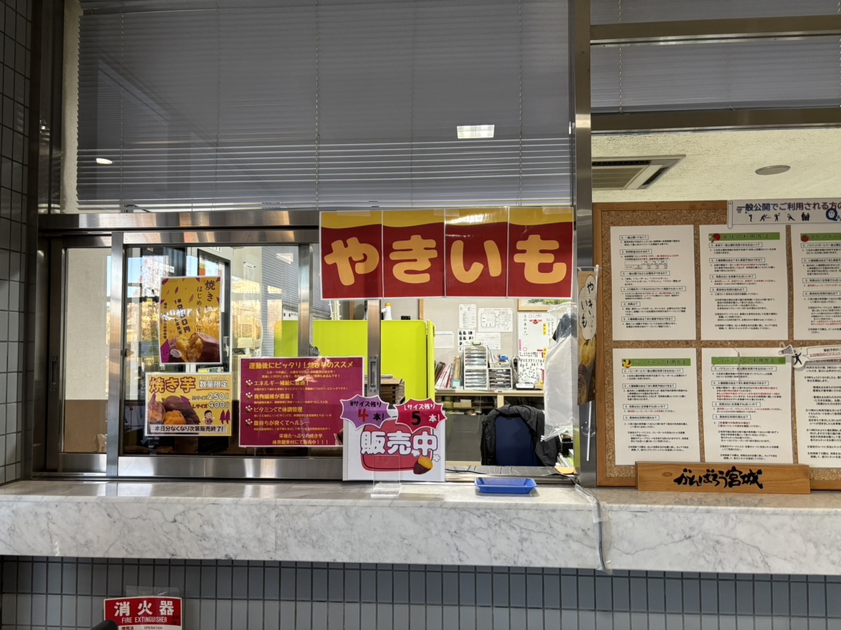 体育館といえば運動や教室のイメージですが、受付付近で焼き芋が買えるようになっていました。