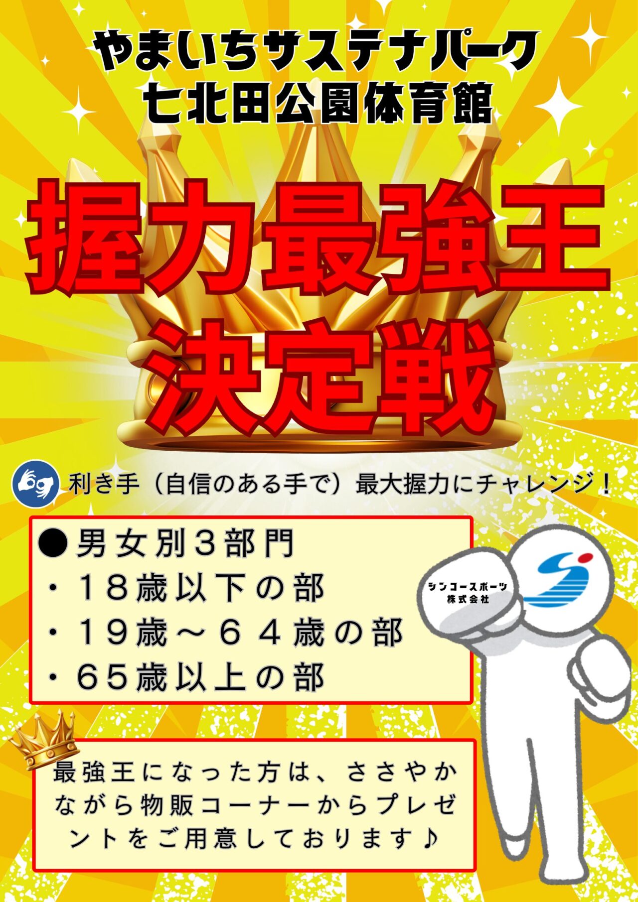 なんだか元気なイベントのお知らせが出ていました。やまいちサステナパーク・七北田公園体育館で、「握力最強王決定戦」が行われるみたいです!