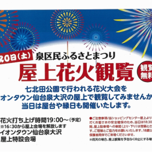 8/20夏祭りと花火、楽しみですね、小中学校の夏休みも終わりに近づいています。季節は夏から秋へ。ところで・・・以下開催情報です。東北大学学友会邦楽部の尺八アンサンブル 9/10(土)13:30~将監沼コミュニティ広場にて開催。あちこちで演奏会を開催している。本日、郵便受けに案内ちらしが入っていました。