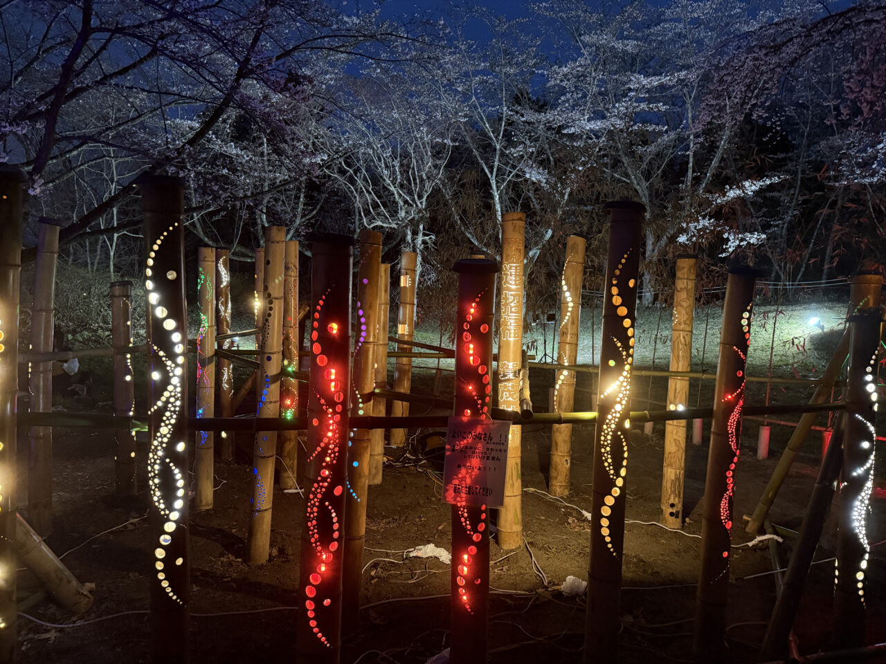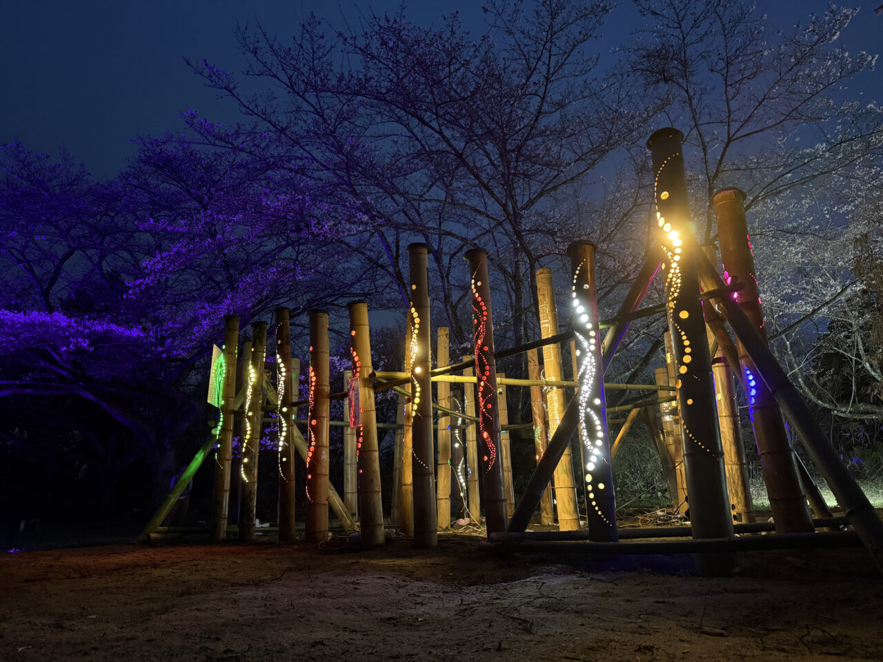夜の長命館公園で、ライトアップ と竹あかりイベントをやってました!