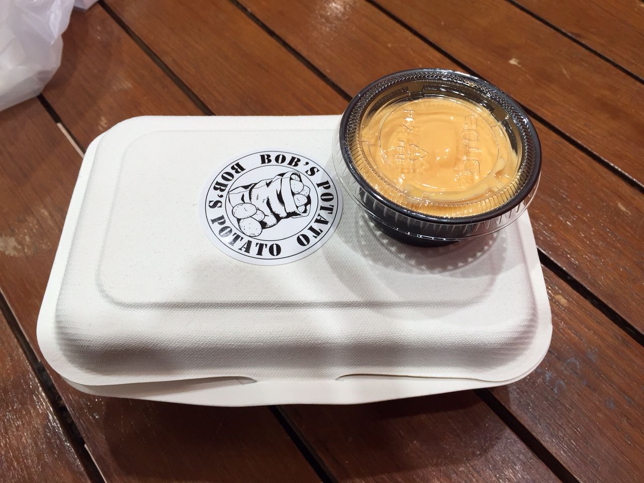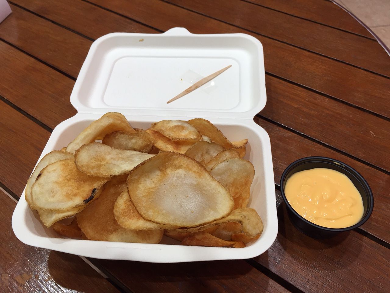 今回は、「厚切りチップス」の「チーズソース」を選んでみました。お店の込み具合や、メニューによって変わりますが、その場でポテトを揚げる為、多少お時間を頂いているとのこと。なので、スーパーでのお買い物中に注文するのをお勧めします。