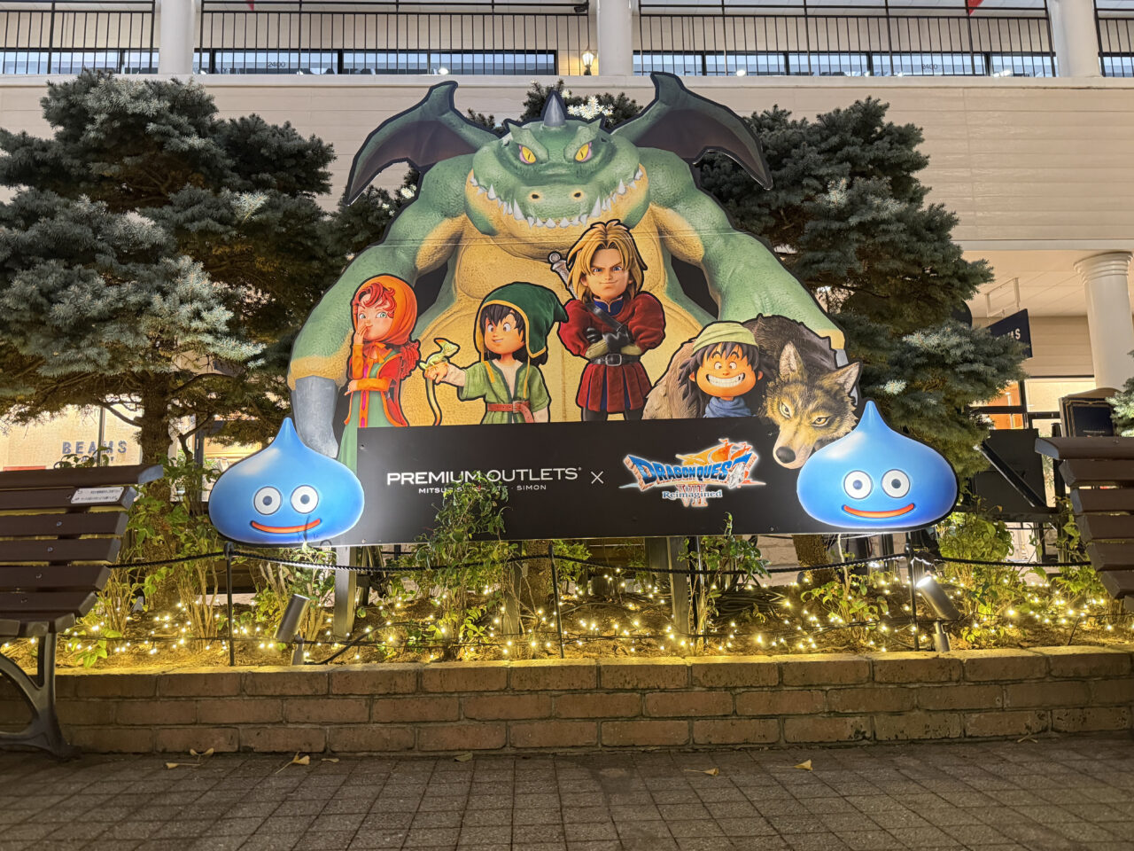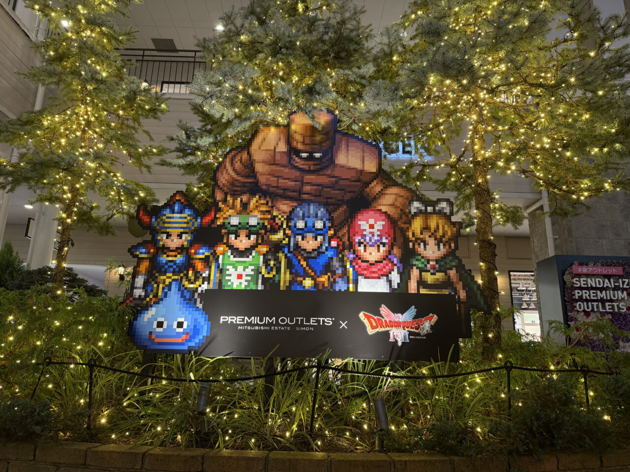 仙台泉プレミアム・アウトレットで開催中の「ドラゴンクエスト」とのコラボイベント。昼とは違ってイルミネーションもきれいだった夜の様子を見てきました!
