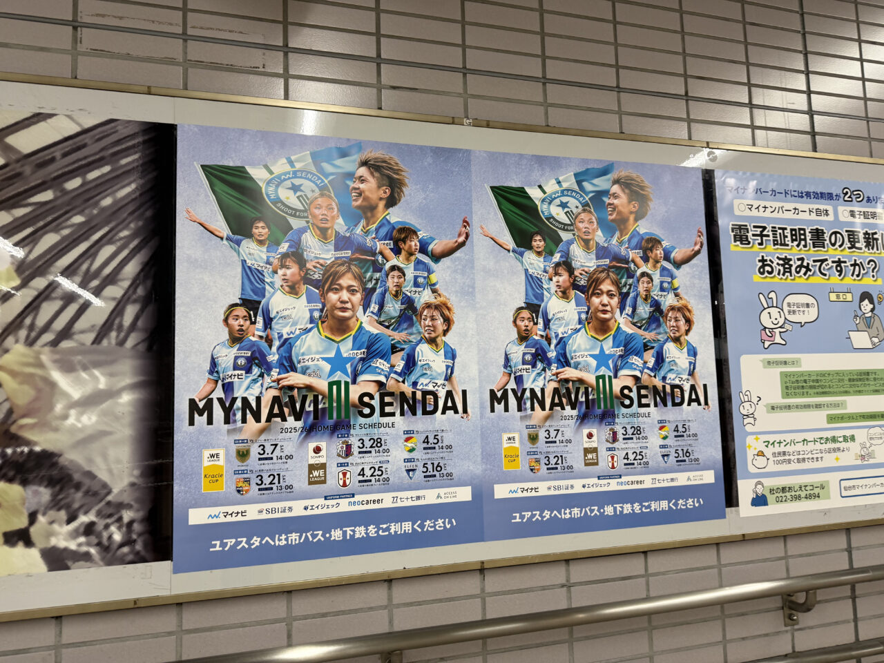地下鉄の泉中央駅を歩いていたら、マイナビ仙台レディースの新しいポスターが貼り出されているのを見つけました!