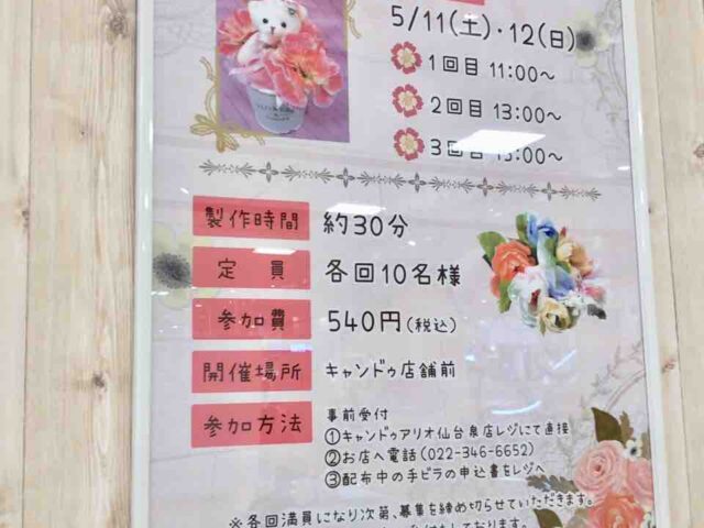 「キャンドゥ アリオ仙台泉店」で母の日にちなんだイベントが開催されるみたい。手作り体験教室。