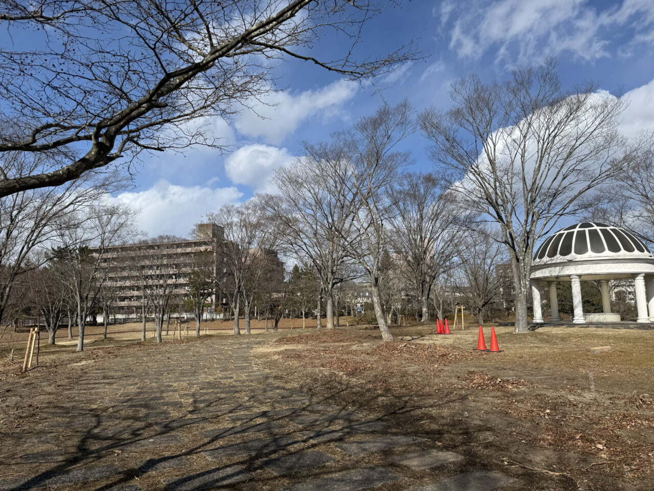 春に向けて整備が進む「結びの丘」。桜の季節がちょっと待ち遠しくなりますね!