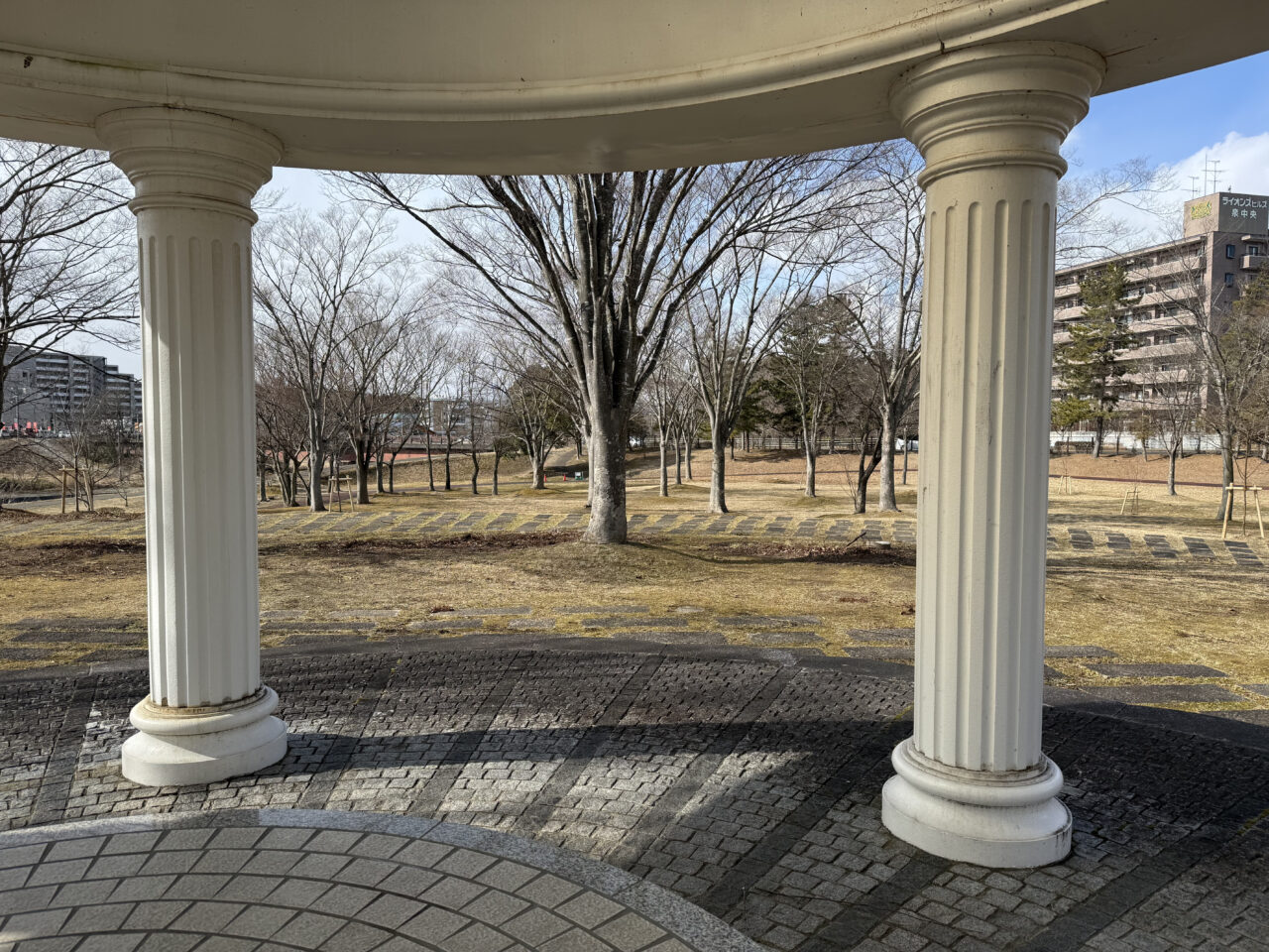 七北田公園の「わんぱく大地」エリア近く、洋風四阿(西洋あずまや)周辺で、なにやら工事が始まっていました。