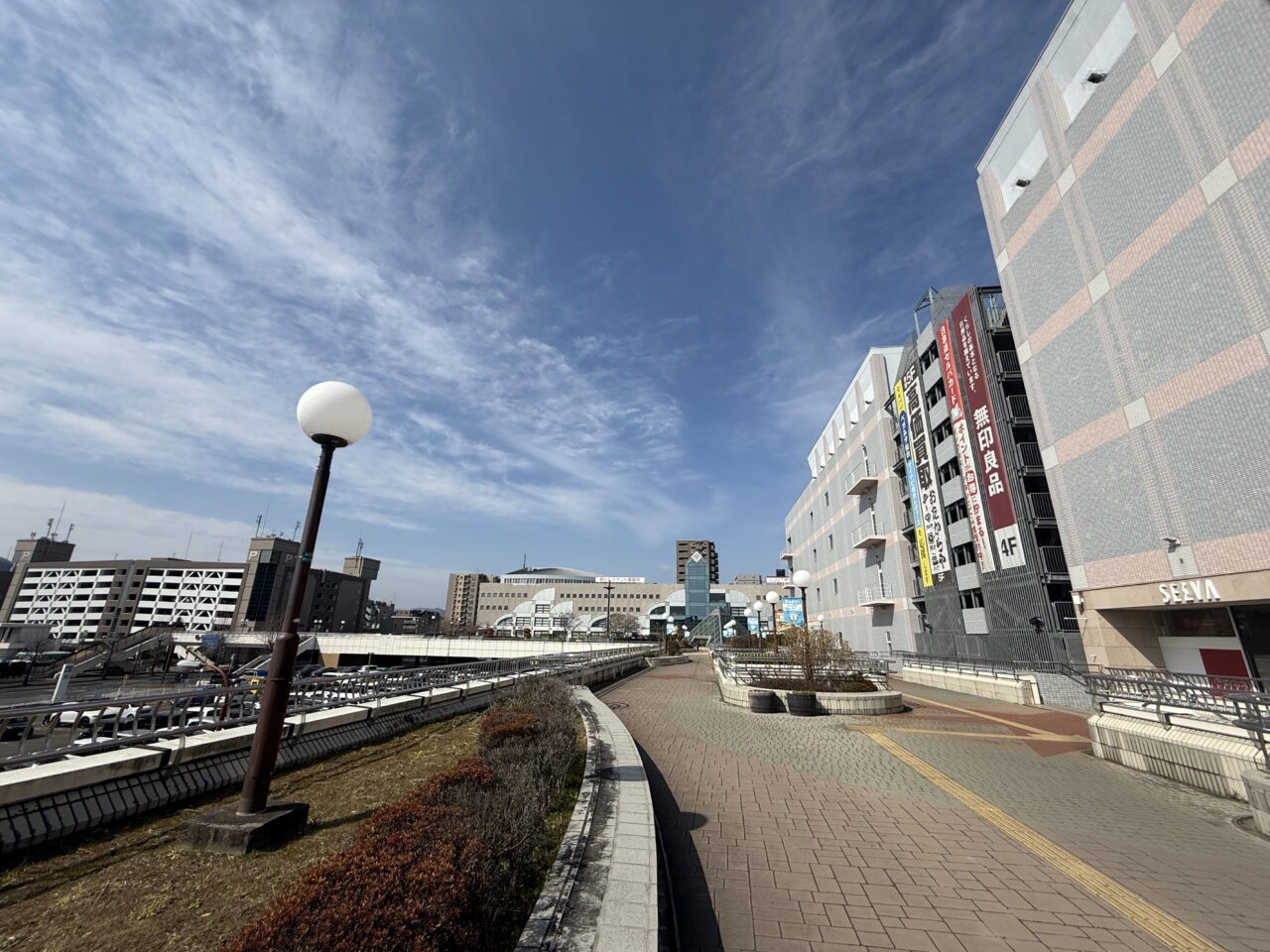まずは泉中央駅の1階、ペデストリアンデッキ下の歩行者専用道路(セルバとミヤテレの駐車場の間の道)へ。